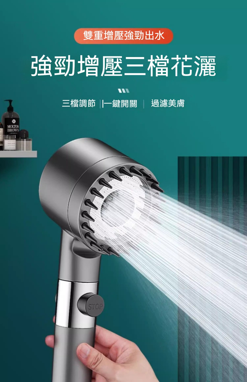 「強壓按摩過濾花灑」✅軟矽膠按摩 SPA體驗 ✅加壓設計水柱超有力✅ 三檔模式隨你調✅ 內建濾芯淨水質✅ 全套配件攏總傳便便✨下單附贈支架+2公尺軟管+5濾芯