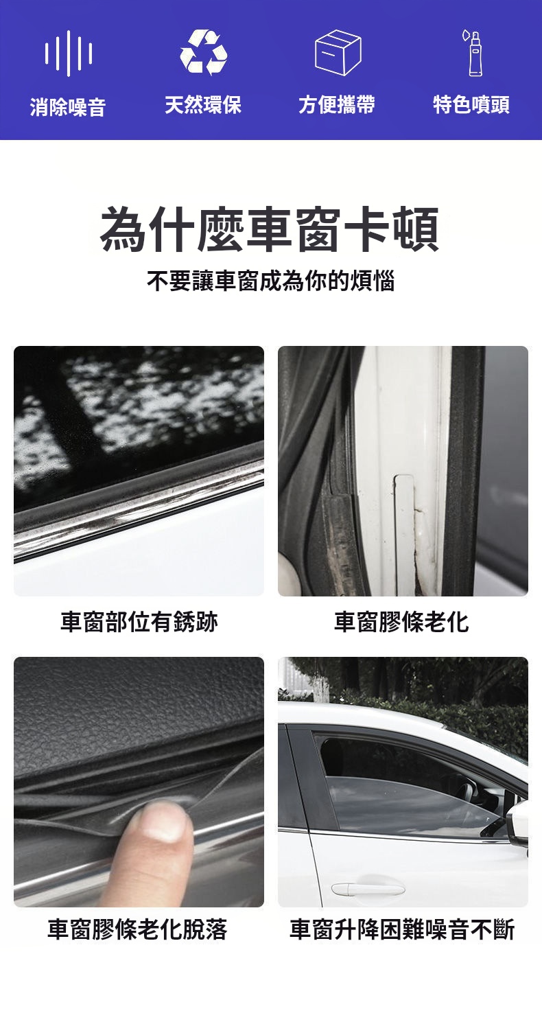汽車美容養護專用|車窗玻璃升降潤滑劑|免拆車門除異響・天窗軌道潤滑噴霧✅ 消除異響✅ 恢復順暢✅ 免拆免洗✅ 防護保養