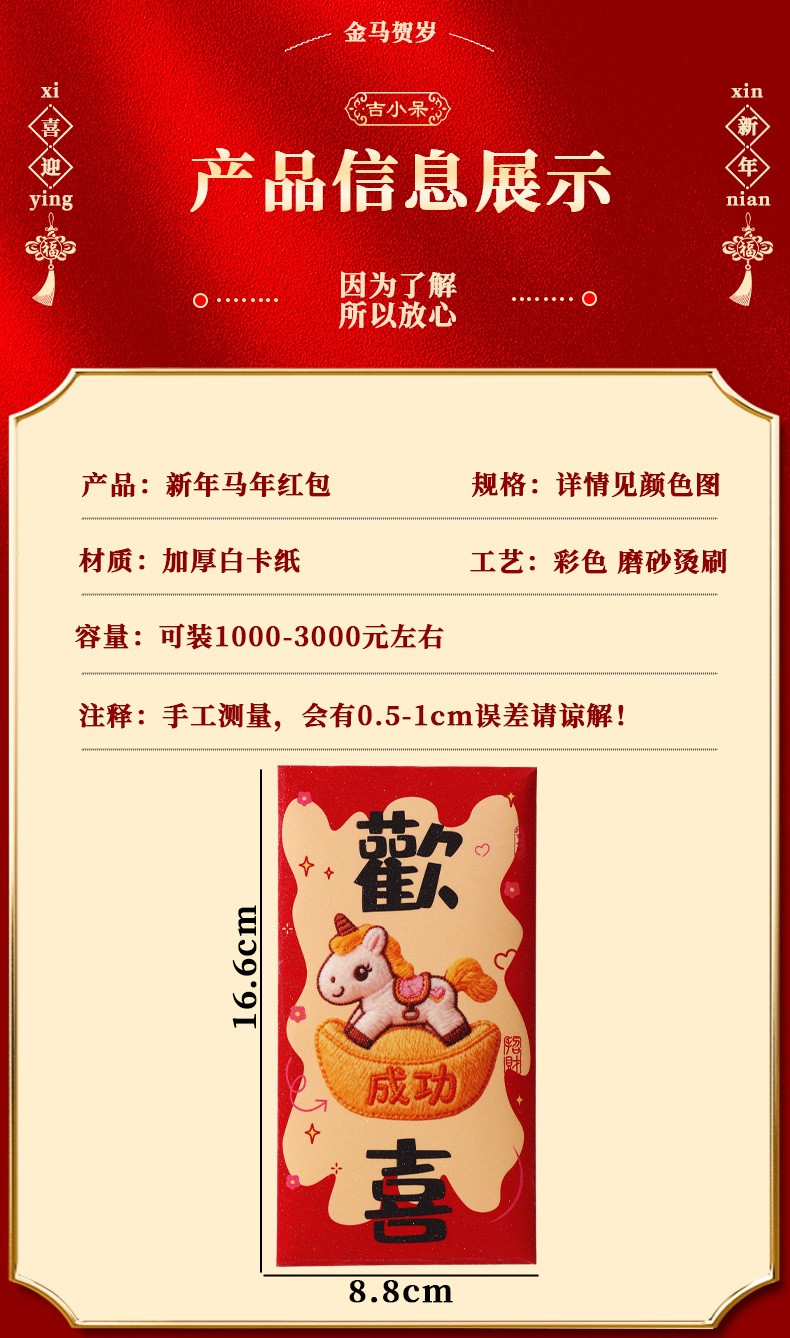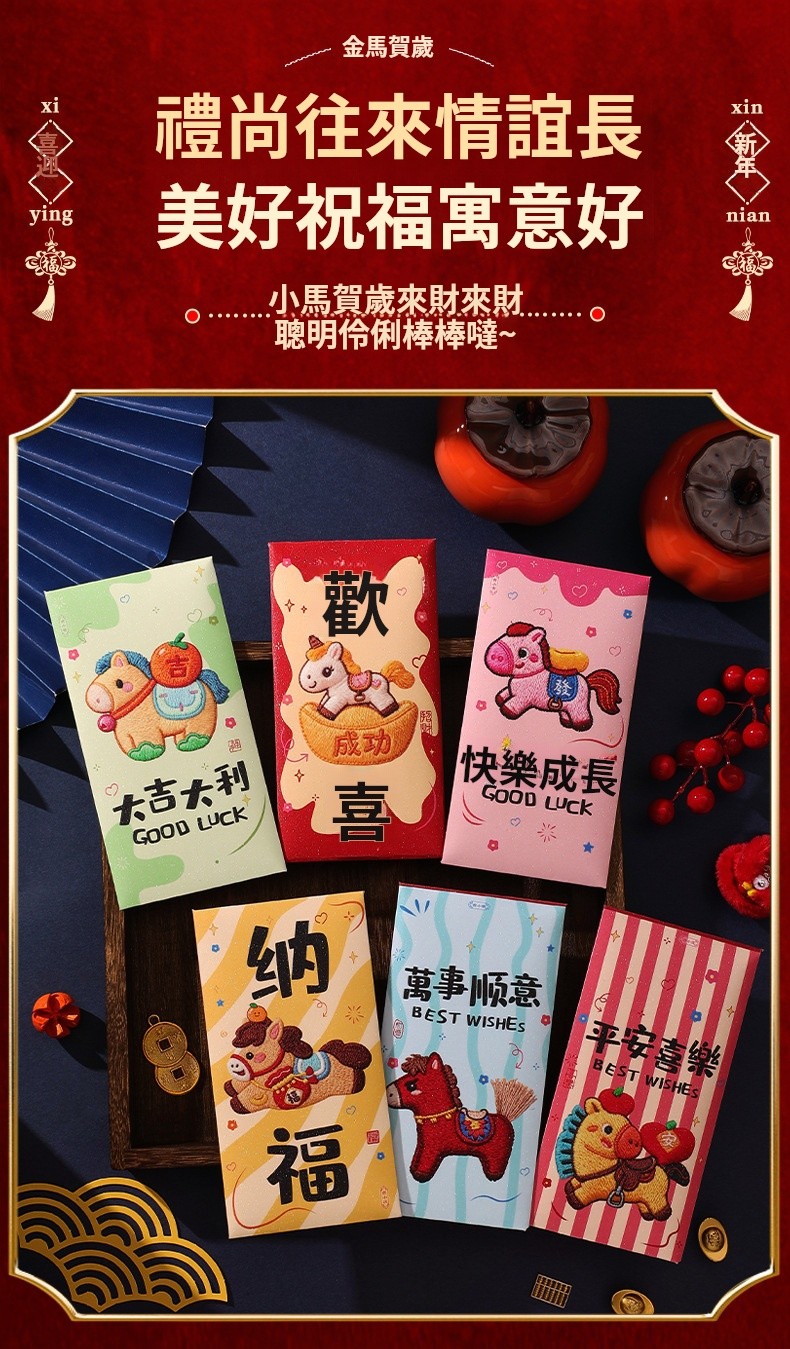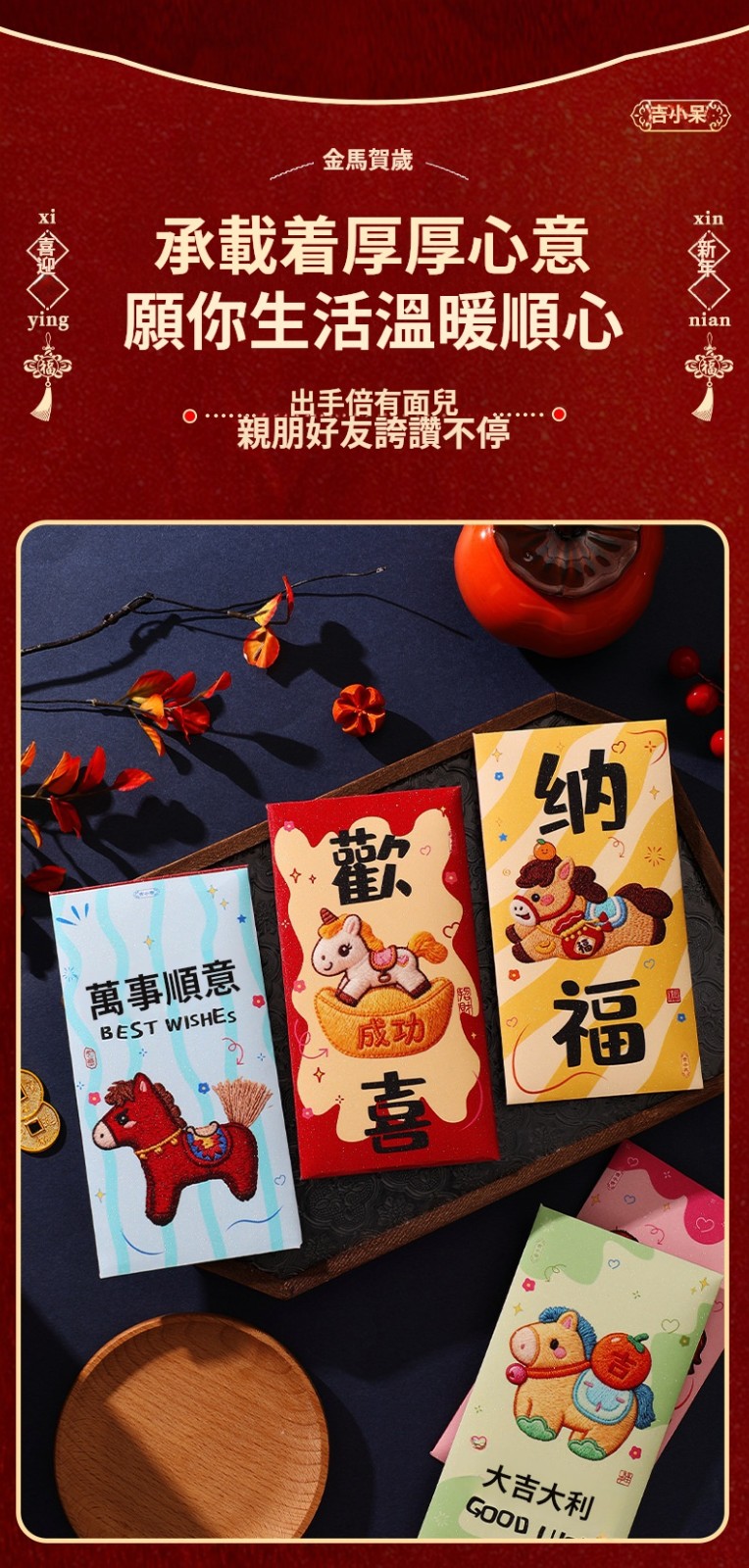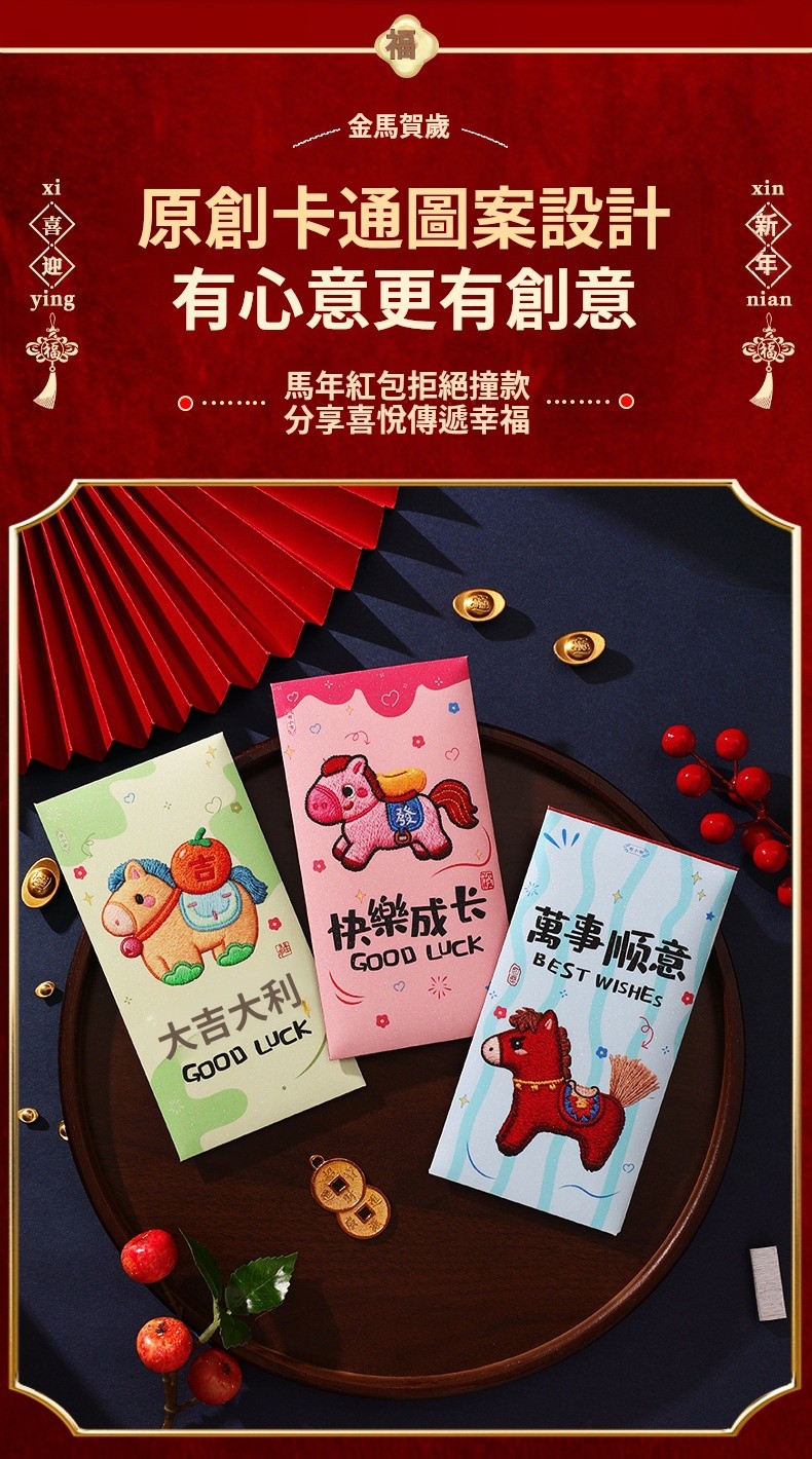 「2026馬年紅包,裝滿福氣攏總來!」立體刺繡加厚紅包袋✅ 立體刺繡精緻亮眼✅ 加厚材質不易皺損✅ 卡通风馬兒超古錐✅ 2026年限定設計